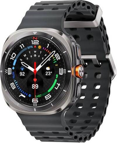 Samsung Galaxy Watch Ultra с корпусом Titanium Silver и ремешком Marine/Dark Gray (M/L) — это флагманские умные часы, сочетающие премиальный дизайн и мощный функционал.