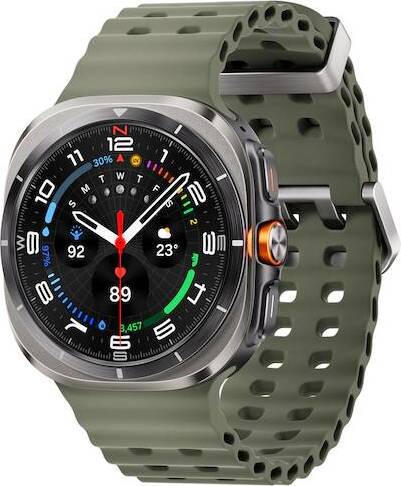 Samsung Galaxy Watch Ultra • 47 мм • Titanium Silver, Размер: 47 мм, Цвет: Titanium Silver, Тип ремешка: Marine, Цвет ремешка: Green, Размер ремешка: M/L