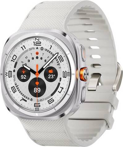 Стильный титановый корпус Titanium White и ремешок Peakform оттенка White Sand делают Galaxy Watch Ultra 47 мм не только надёжным гаджетом, но и аккуратным аксессуаром. Устройство создано выдерживать экстремальные нагрузки: встроенная спутниковая связь, автономный GPS и защита по военному стандарту обеспечивают безопасность и точность даже в дикой местности. AMOLED-дисплей остаётся видимым при любом освещении, а система мониторинга здоровья анализирует пульс, дыхание, стресс и фазы сна в реальном времени. Батарея работает до 28 часов без подзарядки, а продуманный интерфейс позволяет быстро переключаться между режимами активности — всё для максимальной продуктивности каждый день.