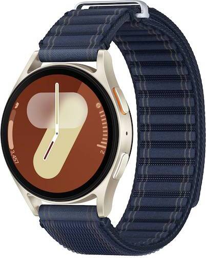 Galaxy Watch7 40 мм Cream с ремешком Fabric/Navy M/L — выбор для тех, кто ищет универсальные смарт-часы с современным дизайном. Кремовый корпус и сдержанный тёмно-синий ремешок гармонично дополняют друг друга, подчеркивая индивидуальный стиль владельца.