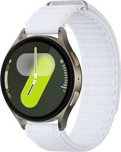 Galaxy Watch7 в зелёном цвете и корпусе 44 мм сочетает в себе инновации и элегантность. Тканевый ремешок с сине-белым дизайном и размером M/L дарит удобство при длительном ношении.