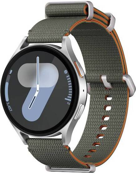 Galaxy Watch7 в элегантном серебристом цвете с ремешком Athleisure Green и размером M/L — это современный гаджет, который объединяет передовые технологии и стильный дизайн. Ремешок выполнен из качественного материала с приятной текстурой, что обеспечивает комфорт при длительном ношении и позволяет часам гармонично вписаться как в спортивный, так и в повседневный образ.