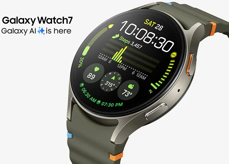 Galaxy Watch7 44 мм в цвете Silver с серебристым спортивным ремешком M/L объединяет строгий дизайн и полезные функции.