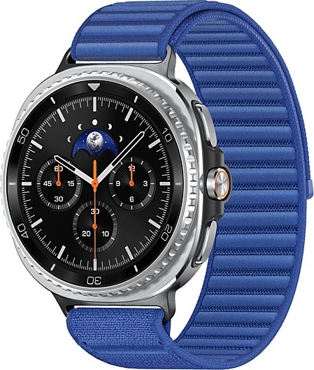 Galaxy Watch8 Classic 4G LTE Black Fabric/Blue M/L сочетает вневременной дизайн с современными технологиями. Механический безель и обновленная система крепления Dynamic Lug System обеспечивают комфортное прилегание и удобство использования. Корпус толщиной всего 10.6 мм делает устройство легким и элегантным, а сапфировое стекло защищает экран от царапин.